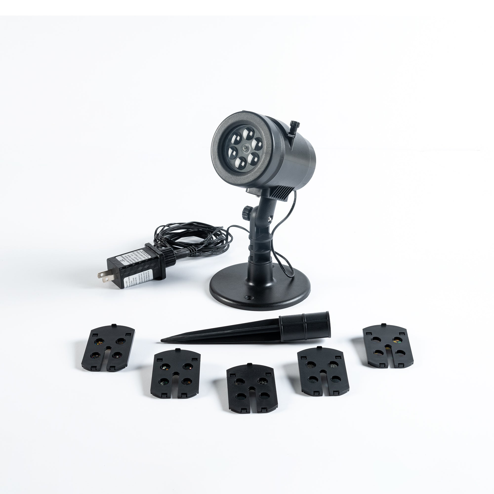 Transforma cualquier espacio en un escenario único con sus increíbles diseños perfectos para cualquier ocasión. Utilizalo en interiores y exteriores. Incluye 1 proyector, 2 bases y 5 plantillas intercambiables.