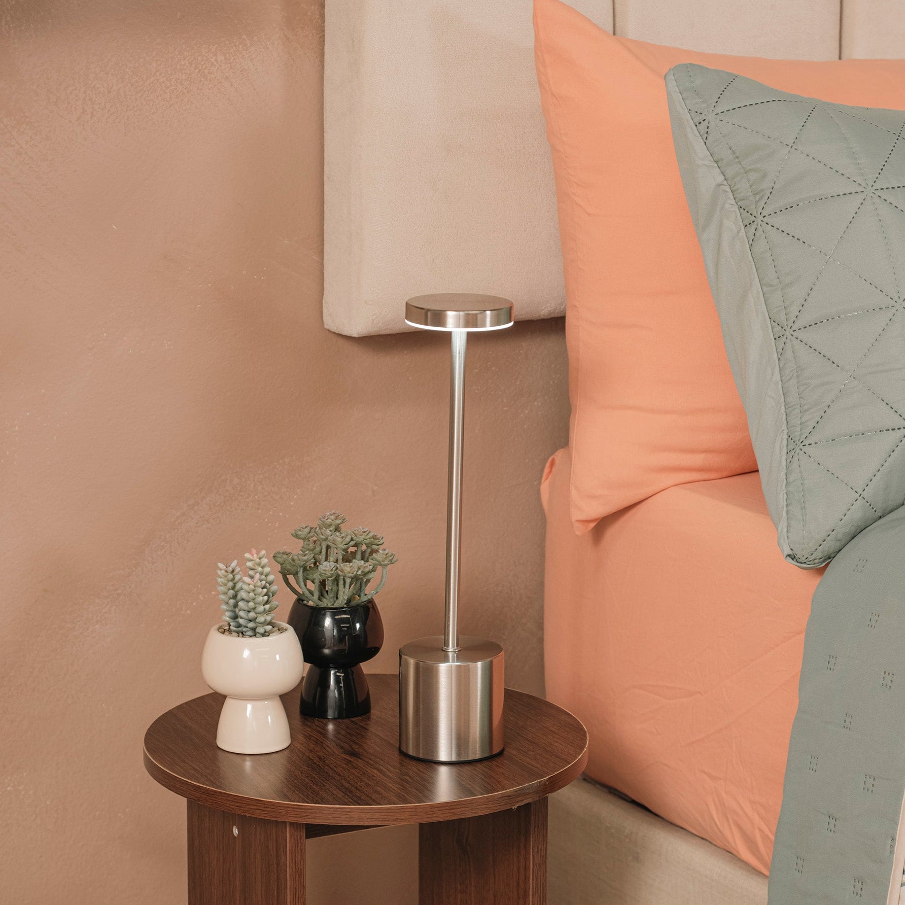 Lámpara de mesa moderna con 3 temperaturas de color (cálida, fría y mixta), luz regulable con toque, batería recargable y carga USB tipo C. Ideal para decorar y ambientar cualquier espacio.