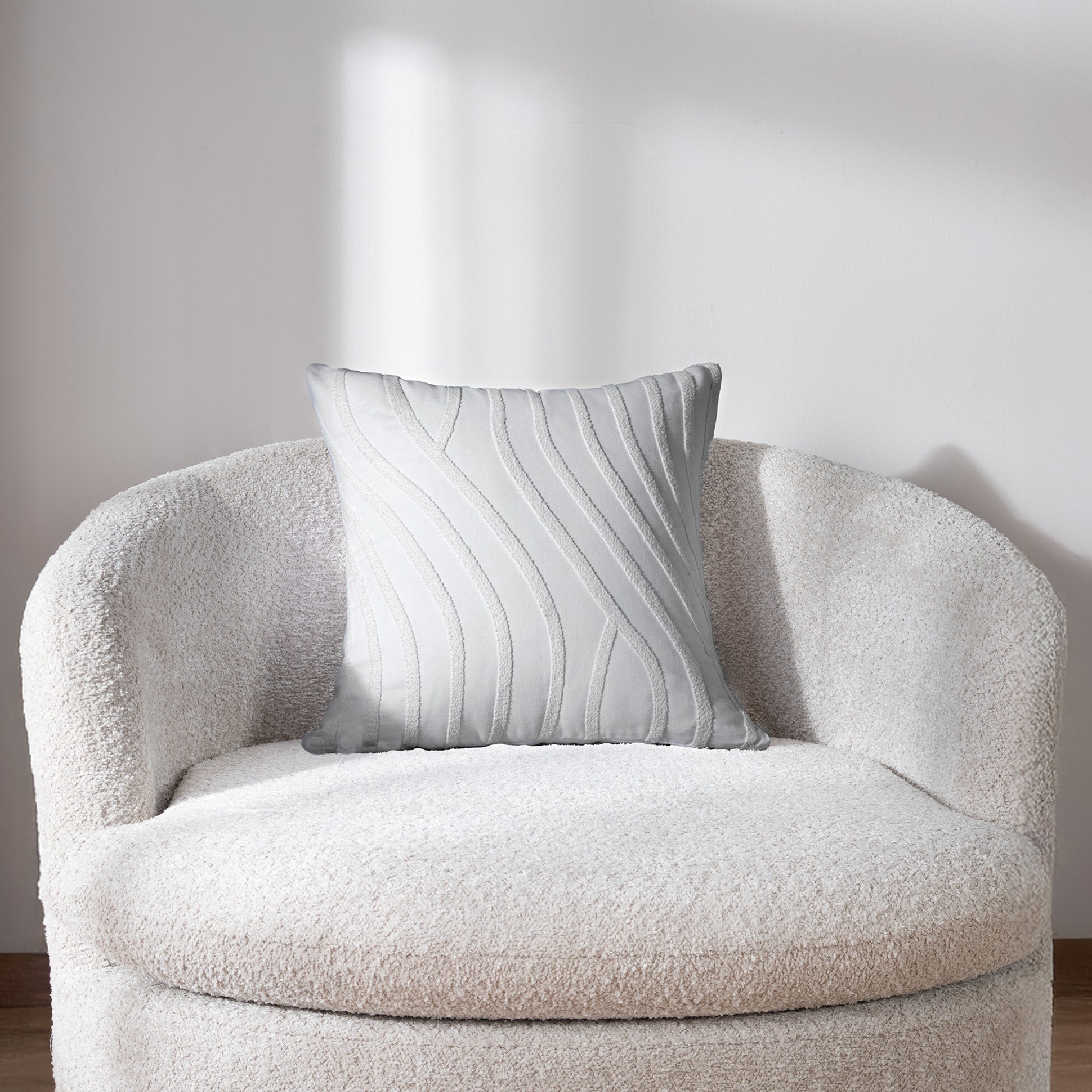 Funda de cojín cuadrada con aplicación de bordado de chenille.